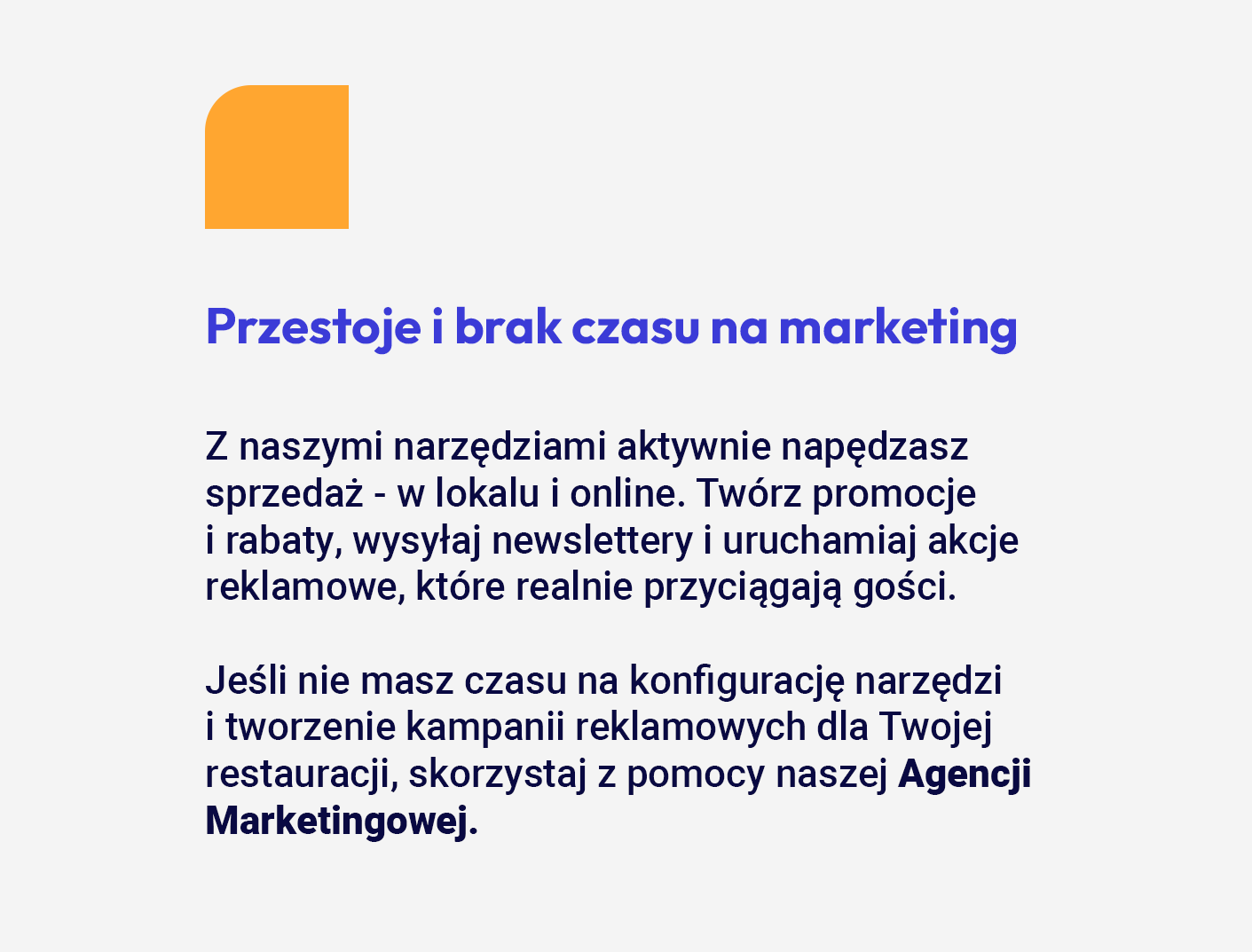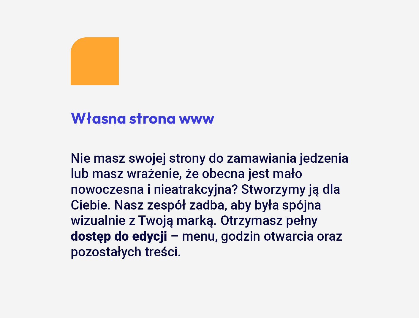 Dopasujemy nasze usługi i narzędzia nie tylko do Twoich potrzeb, ale także profilu lokalu (wielkości miasta, rodzaju kuchni), ale także stanu portfela.